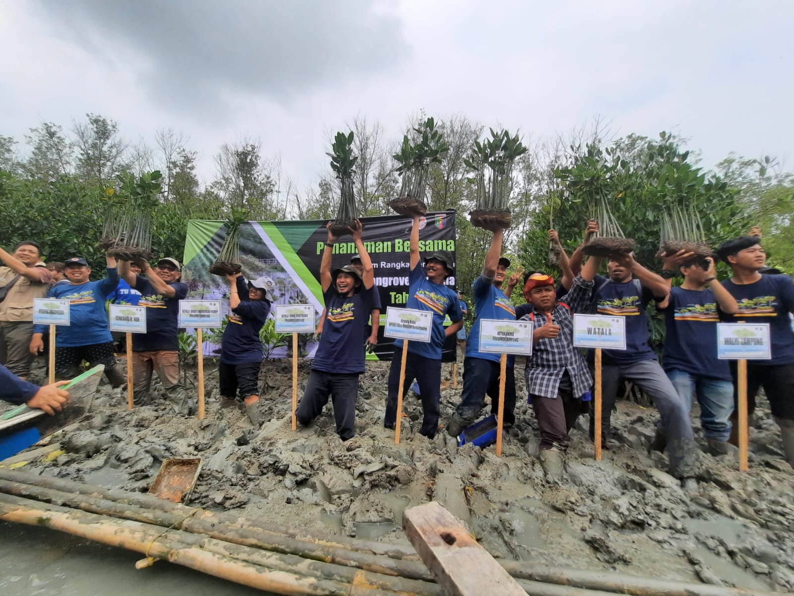“Dalam kegiatan ini, kami juga memperkenalkan penanaman mangrove dengan metode rumpun. Kelebihannya satu rumpun ini terdiri dari 25 batang. Lebih kuat dan tidak rontok. Kalau menggunakan rumpun akan tahan ombak dan tahan angin, tidak mudah roboh.” Idi Bantara memaparkan.