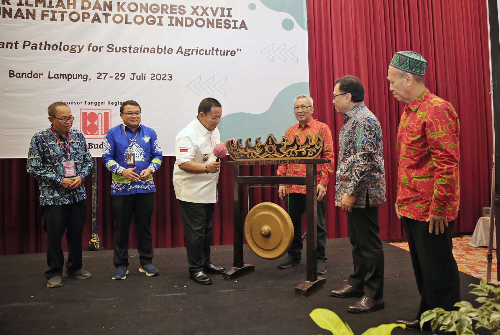 BANDARLAMPUNG —– Gubernur Lampung Arinal Djunaidi membuka Seminar Ilmiah dan Kongres XXVII Perhimpunan Fitopatologi Indonesia bertemakan Modern Plant Pathology for Sustainable Agriculture, yang dilaksanakan di Ballroom Hotel Horison, Bandar Lampung, Kamis (27/7/2023).