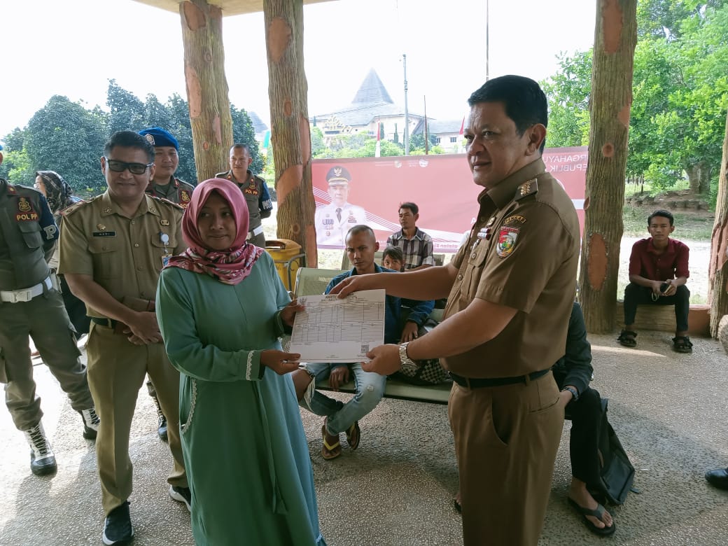 Panaragan – Penjabat (Pj) Bupati Tulangbawang Barat (Tubaba) Firsada turut melayani dengan menyerahkan Kartu Keluarga (KK) kepada seorang warganya saat meninjau langsung pelayanan kependudukan di Kantor Dinas Kependudukan dan Pencatatan Sipil (Disdukcapil) Kabupaten setempat. Selasa (08/08/2023).