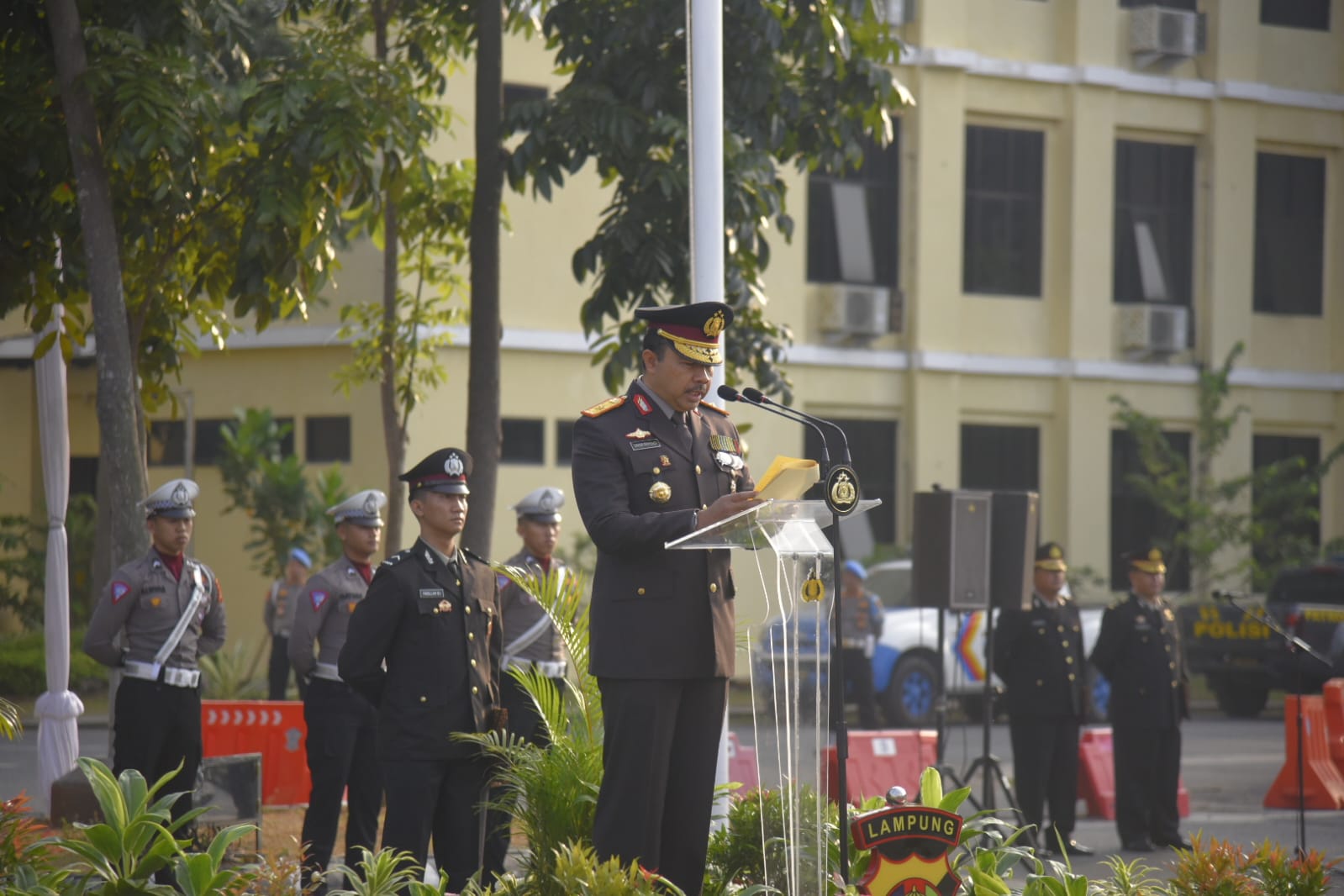 Dalam upacara tersebut, bertindak selaku Inspektur Upacara adalah Wakapolda Lampung Brigjen Pol Umar Effendi. Upacara diikuti oleh para Pejabat Utama Polda dan seluruh personel Polda Lampung.