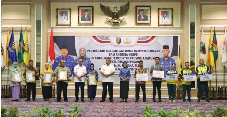 Sementara itu, Sekdaprov Lampung yang juga merupakan Ketua Dewan Pengurus Korpri Provinsi Lampung, Fahrizal Darminto dalam laporannya mengatakan bahwa Pemerintah Provinsi Lampung melalui Dewan Pengurus Korpri memberikan Tali Asih kepada PNS yang memasuki masa purna bakti untuk Periode bulan Mei, Juni, Juli,