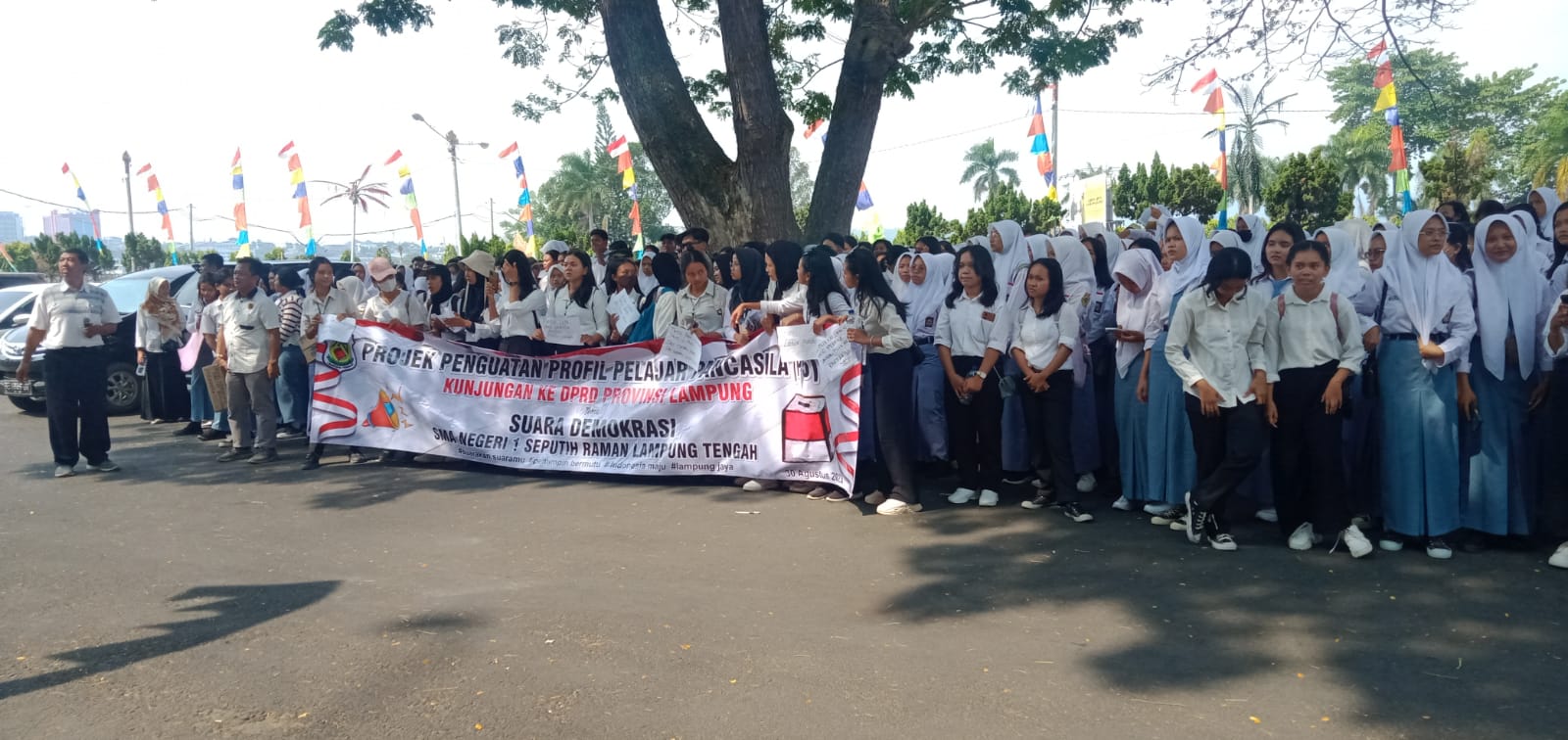 Bandarlampung – Ratusan pelajar asal SMA 1 Seputih Raman, Lampung Tengah belajar demonstrasi di depan Kantor DPRD Provinsi Lampung.