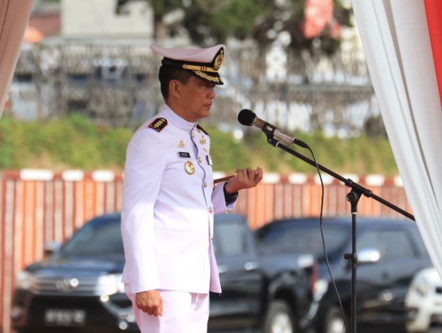 Sekretaris Daerah Provinsi Lampung, Fahrizal Darminto bersama Forkopimda Provinsi Lampung hadir dalam upacara yang bertema “Pancasila Pemersatu Bangsa Menuju Indonesia Maju,”