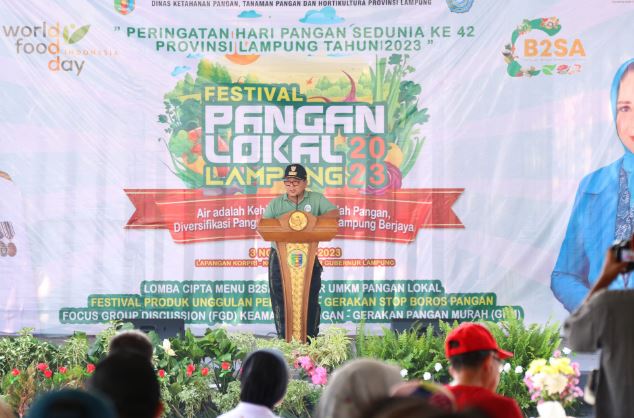 Dalam sambutannya, Gubernur Arinal menyampaikan bahwa peringatan Hari Pangan Sedunia merupakan momentum untuk meningkatkan kesadaran akan pentingnya pangan dalam kehidupan manusia. Ia juga mengingatkan bahwa saat ini dunia sedang menghadapi tantangan perubahan iklim yang dapat berdampak pada ketersediaan pangan.
