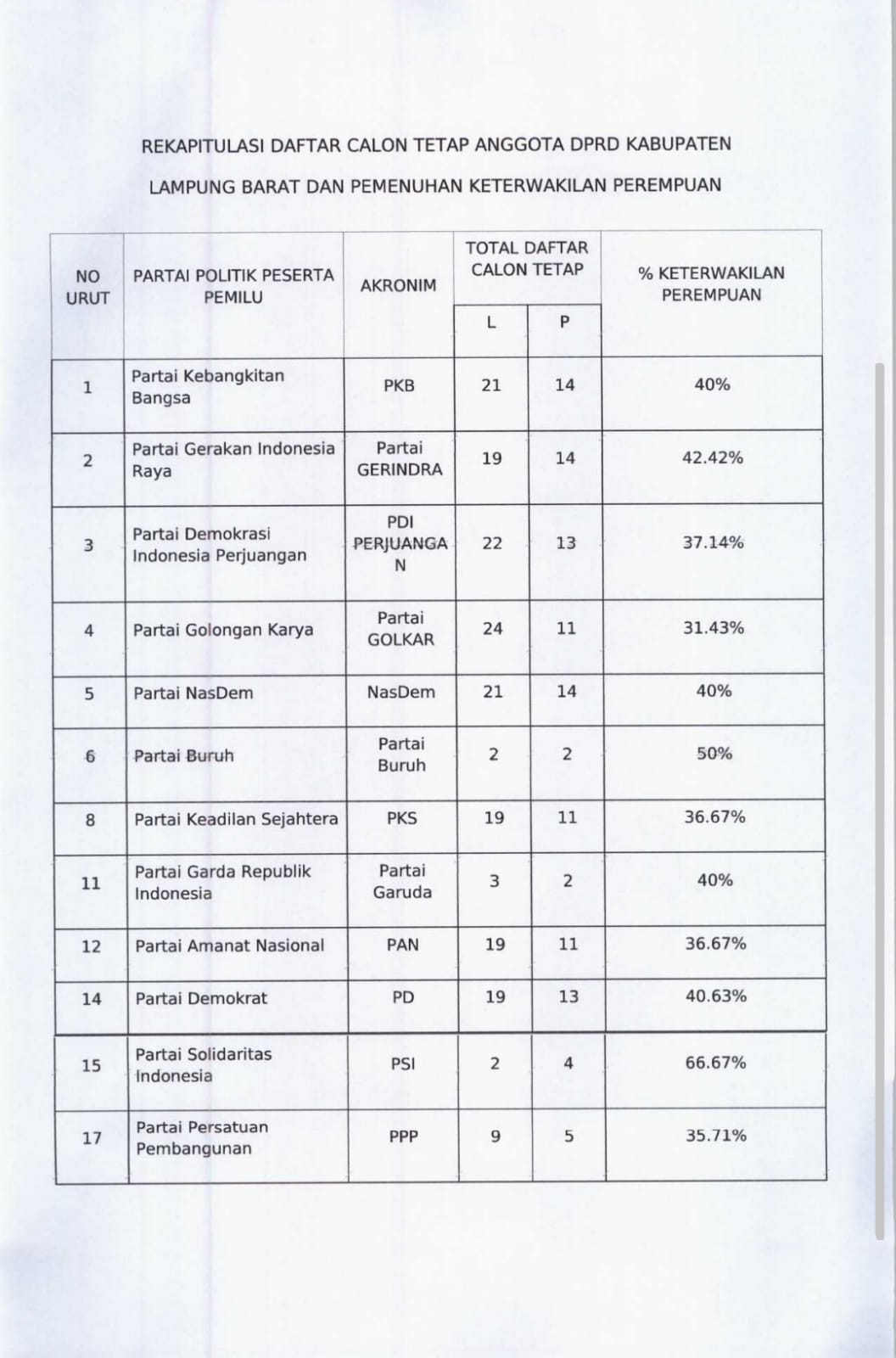Daftar Calon Tetap atau DCT Anggota DPRD Kabupaten Lampung Barat dalam Pemilu 2024.