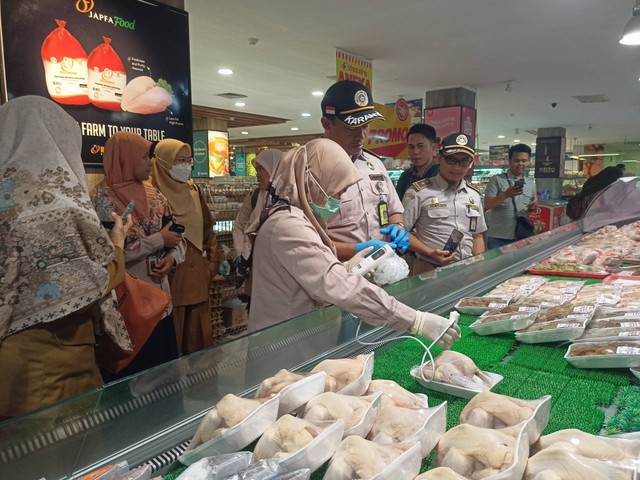 Sidak dilanjutkan dengan pengujian PSAT melalui uji cepat (rapid test), yaitu residu pestisida pada sayur dan formalin pada buah dan pengecekan pH terhadap bahan pangan segar asal hewan (ayam dan daging). Sementara untuk uji bahan pangan ikan (salmon, ikan giling tenggiri, gabus, tuna dan dori) dilakukan uji kandungan formalin.