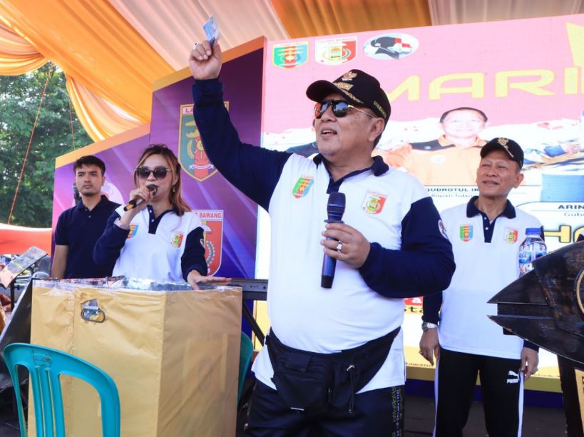 Tulang bawang — Gubernur Lampung Arinal Djunaidi melepas peserta jalan sehat bertempat di Terminal Kota Menggala, Kabupaten Tulang Bawang, Jumat (15/12/2023).