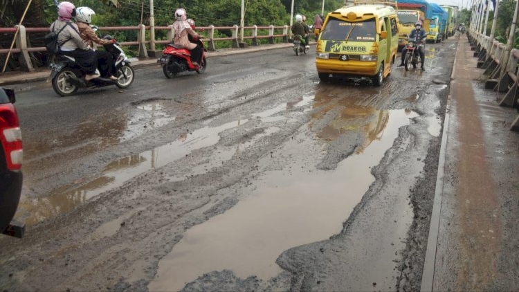Kini, kerusakan Jembatan Way Seputih di Kecamatan Gunungsugih, Kabupaten Lampung Tengah itu semakin parah. Lubang pada badan jembatan kian banyak, bahkan muncul cekungan pada sambungan jembatan.