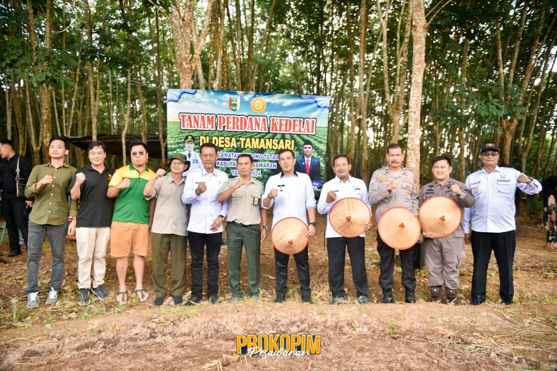 Pesawaran – Bupati Pesawaran Dendi Ramadhona bersama Direktur Aneka Kacang dan Umbi Kementerian Pertanian RI Yuris Tiyanto hadir bersama dalam kegiatan Tanam Kedelai Perdana Di Desa Taman Sari Kecamatan Gedong Tataan.