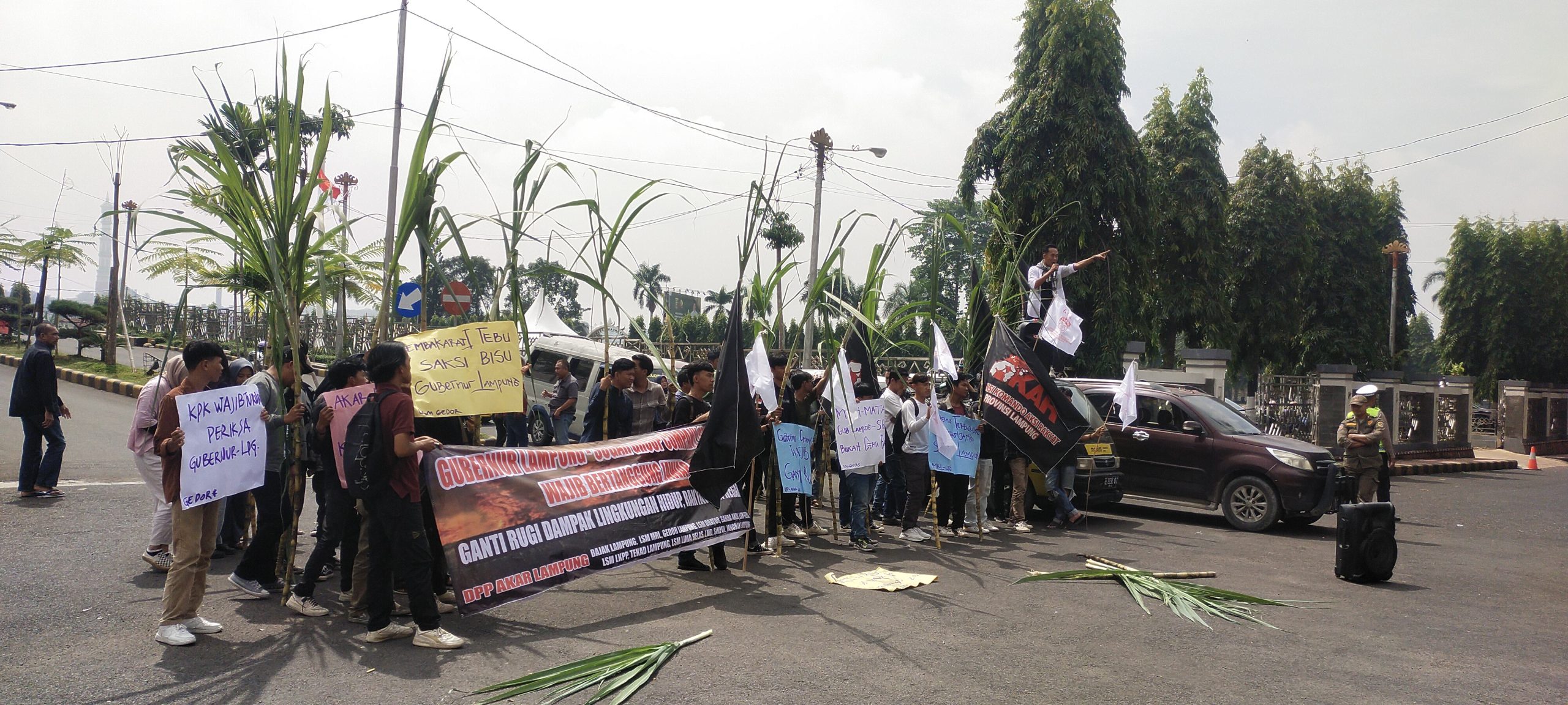 Bandarlampung – Sejumlah aliansi Lembaga Swadaya Masyarakat menggelar aksi, menuntut Gubernur Lampung bertanggung jawab dampak pergub Lampung no 33 Tahun 2020 tentang tata kelola panen dan produktivitas tanaman tebu.