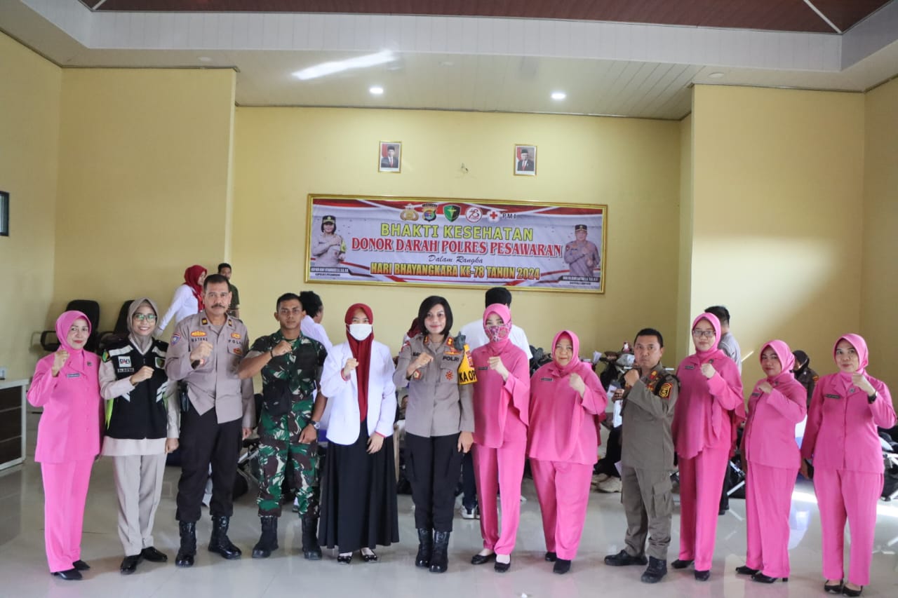 Dalam kesempatannya, Kapolres Pesawaran mengatakan Kegiatan Bhakti Kesehatan Donor darah ini dalam rangka menyambut hari Bhayangkara ke -78 yang akan jatuh pada 1 juli Tahun 2024 yang di ikuti oleh Instansi Terkait diantaranya TNI, POLRI, Pengadilan Negeri, Satpol PP, Bhayangkari dan masyarakat setempat,”Pungkas Kapolres”.