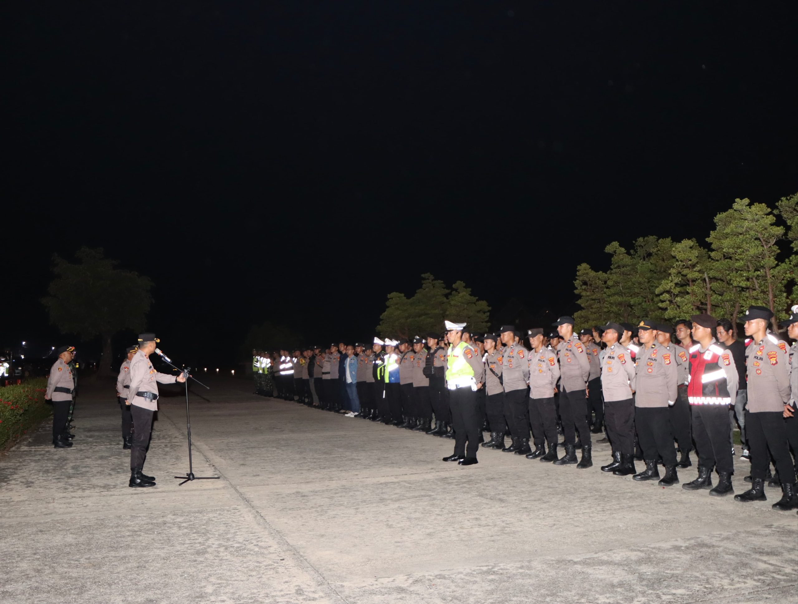 Tulang Bawang Barat—–Ratusan personel Polres Tulang Bawang Barat (Tubaba) dan tim gabungan melakukan pengamanan kegiatan malam takbiran menyambut perayaan Hari Raya Idul Adha 1445 Hijriah.