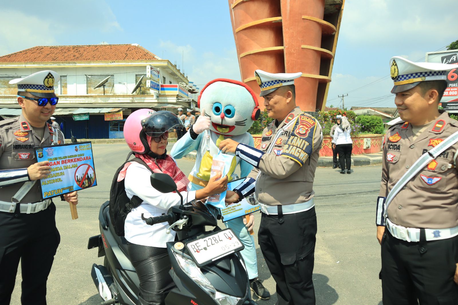 Gebyar Operasi Patuh Krakatau ini juga dimeriahkan dengan kegiatan yang sangat Edukatif dan Humanis serta menggunakan peraga badut untuk menghibur dan menciptakan suasana yang simpatik, Selain itu juga diberikan Apresiasi bagi pengendara yang patuh dalam berlalu lintas. (*)