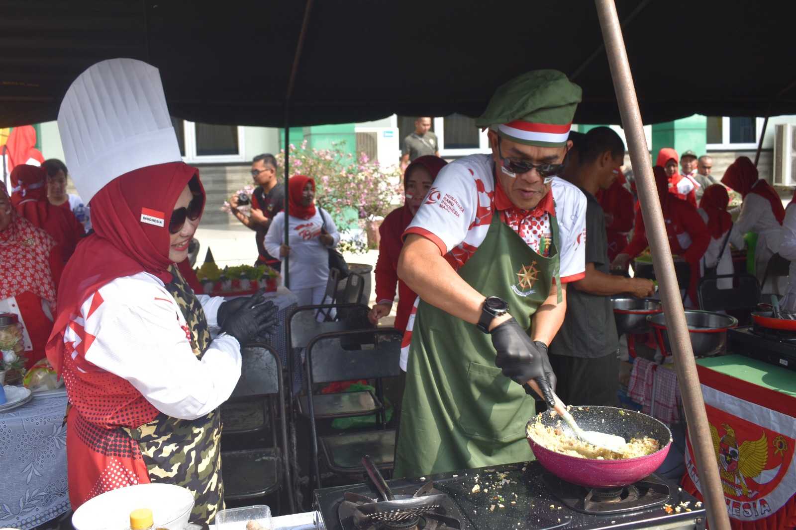 Lampung – Ada yang menarik dalam memeriahkan hari Kemerdekaan Republik Indonesia Ke-79 Tahun 2024, Komandan Korem 043/Gatam Brigjen TNI Rikas Hidayatullah, S.E., M.M., didampingi Ketua Persit Kartika Chandra Kirana Koorcab Rem 043 PD II/Swj Ny. Hanny Rikas Hidayatullah, mengikuti lomba memasak nasi goreng, bertempat di lapangan Makorem 043/Gatam Jl. Teuku Umar Penengahan Bandar Lampung. Selasa (20/08/2024).