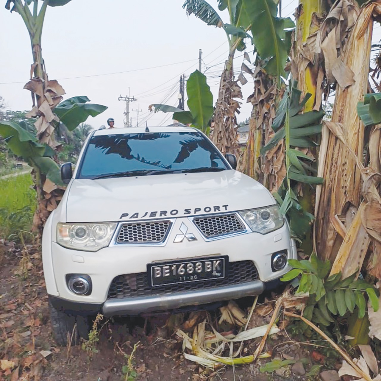 BANDARLAMPUNG – Warga Mekarsari Desa Karangsari, Kecamatan Jatiagung, Kabupaten Lampung Selatan, dibuat bingung dengan keberadaan unit mobil jenis Pajero warna putih di perkebunan pisang di jalan terusan Pasar Untung.