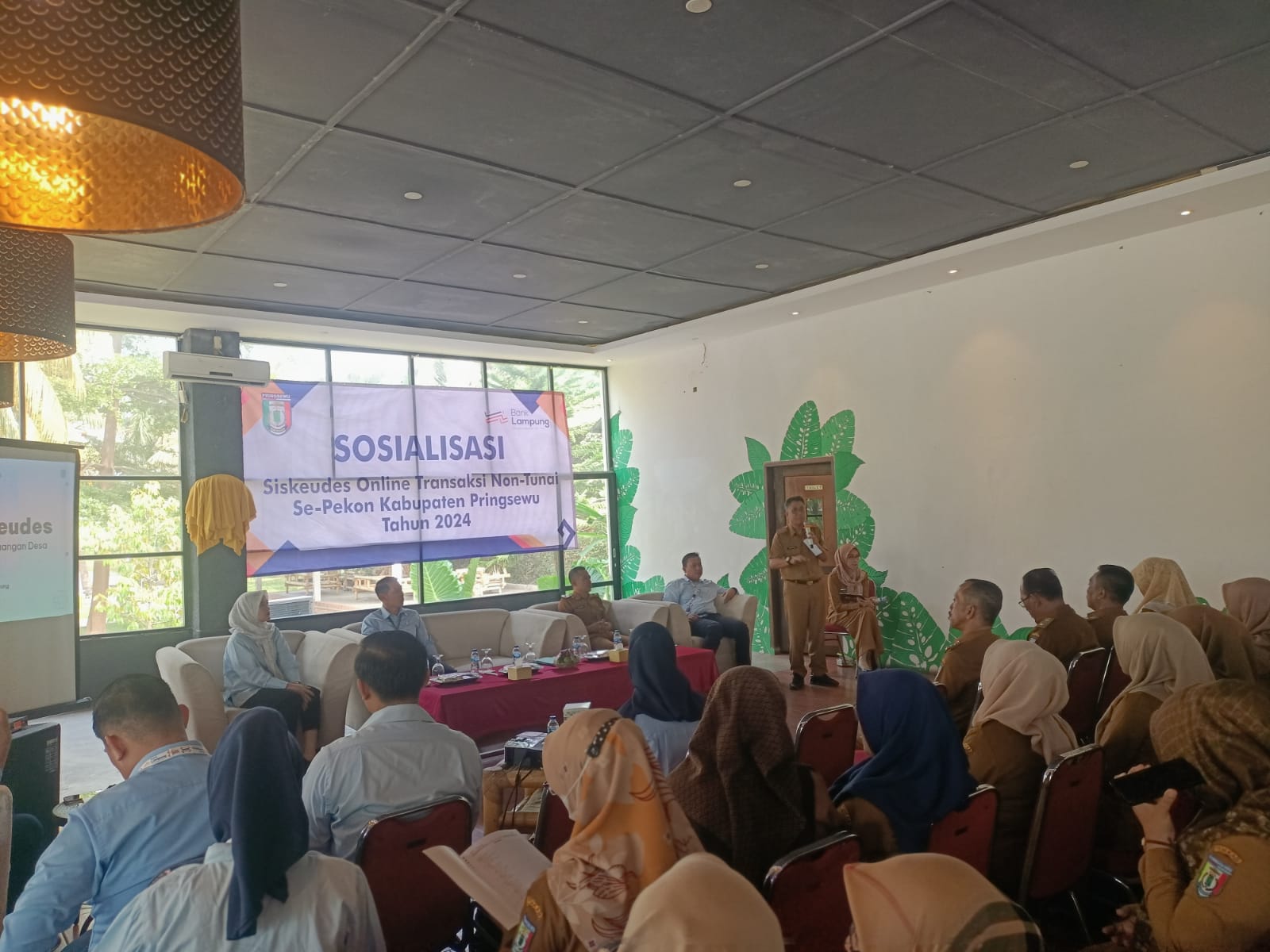 Sebanyak 2 kecamatan aparatur pekon yaitu kecamatan Pringsewu,dan kecamatan gading Rejo , dari kepala pekon ,bendahara ,hingga sektaris pekon yang hadir dalam kegiatan sosialisasi siskeudes online transaksi secara tunai yang berkerjasama dengan BANK Lampung .