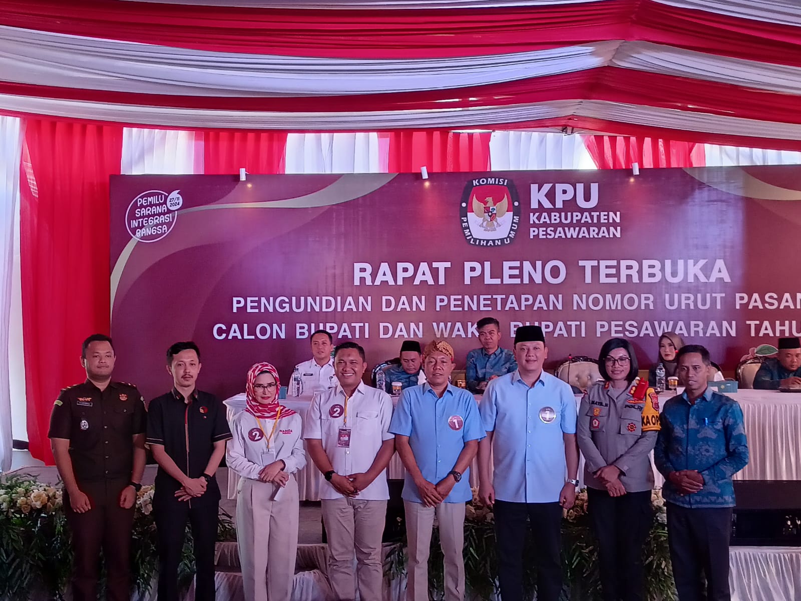 Pesawaran – Komisi Pemilihan Umum (KPU) Kabupaten Pesawaran melakukan Rapat Pleno terbuka pengundian dan penetapan nomor urut Calon Bupati dan Wakil Bupati Kabupaten Pesawaran pada Pilkada serentak 2024.