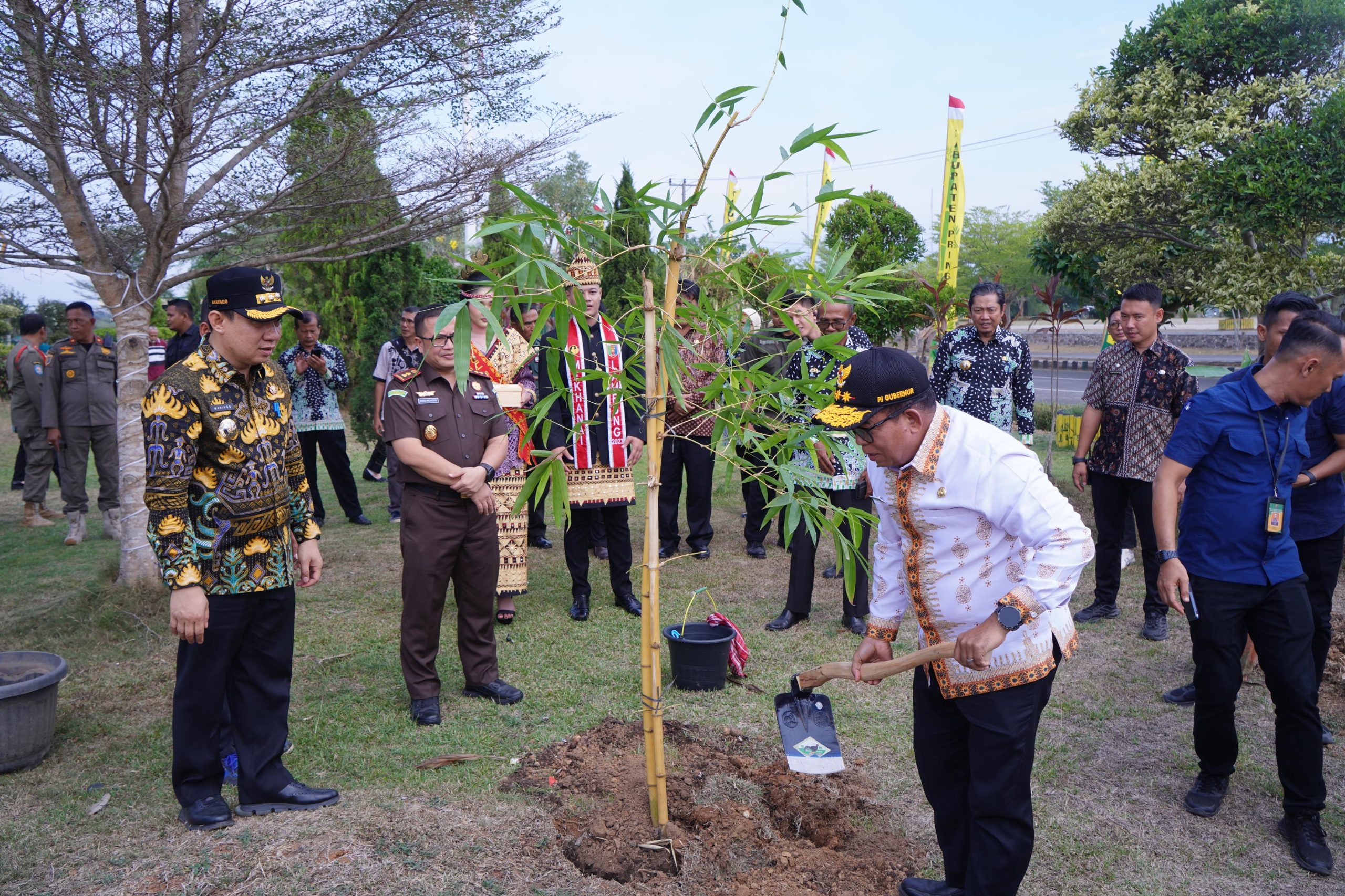 Acara penanaman pohon bambu yang merupakan icon Kabupaten Pringsewu ini merupakan bagian dari rangkaian kegiatan kunjungan kerja Pj.Gubernur Lampung di Bumi Jejama Secancanan.
