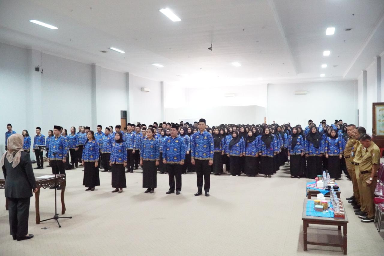 Dalam kegiatan ini, sebanyak 214 pejabat fungsional kesehatan dan 315 PNS diambil sumpah jabatannya. Dra. Bayana menekankan pentingnya tanggung jawab yang melekat pada setiap jabatan yang diemban oleh para pejabat dan PNS yang baru dilantik.