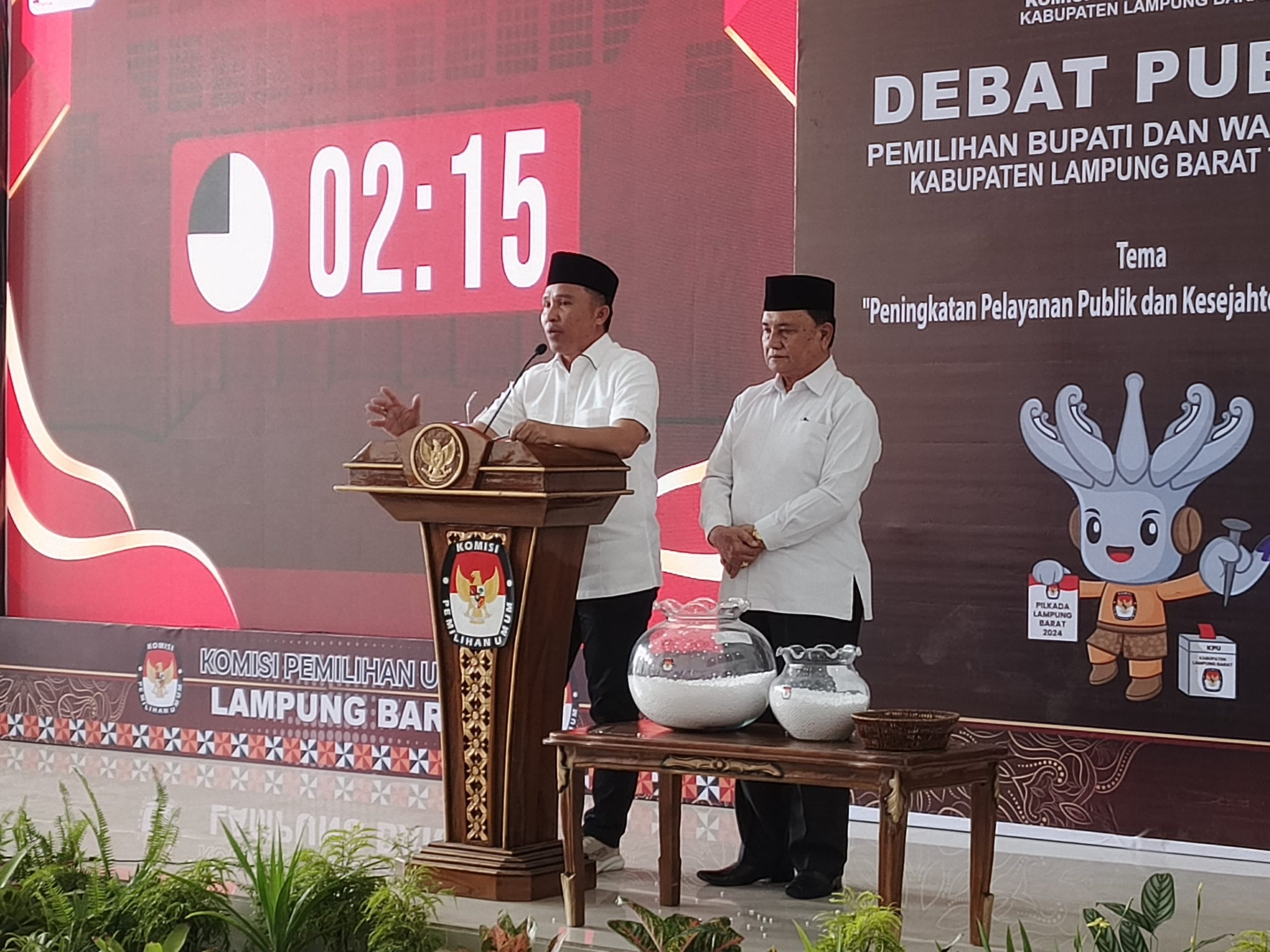 Debat kandidat ini mengangkat tema “Peningkatan Pelayanan Publik dan Kesejahteraan Masyarakat,” dan dihadiri oleh berbagai tokoh, termasuk Kapolres, Dandim, Kementerian Agama, Pengadilan Negeri, serta Forkopimda Lampung Barat.