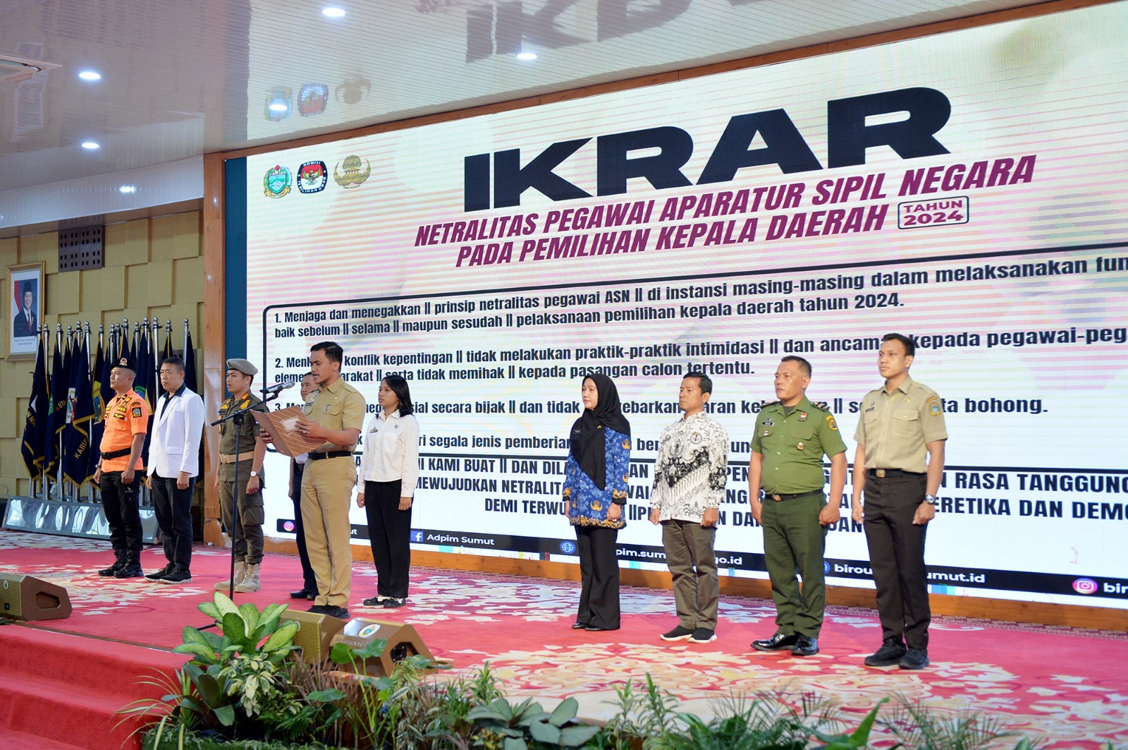 Deklarasi ini diikuti oleh ASN se-Sumut, dengan dihadiri Pangdam I/Bukit Barisan Mochamad Hasan, Kajati Sumut Idianto, Kepala OPD se-Pemprov Sumut, Ketua KPU, Ketua Bawaslu, serta Bupati dan Walikota se-Sumut yang hadir secara langsung maupun virtual. (*)