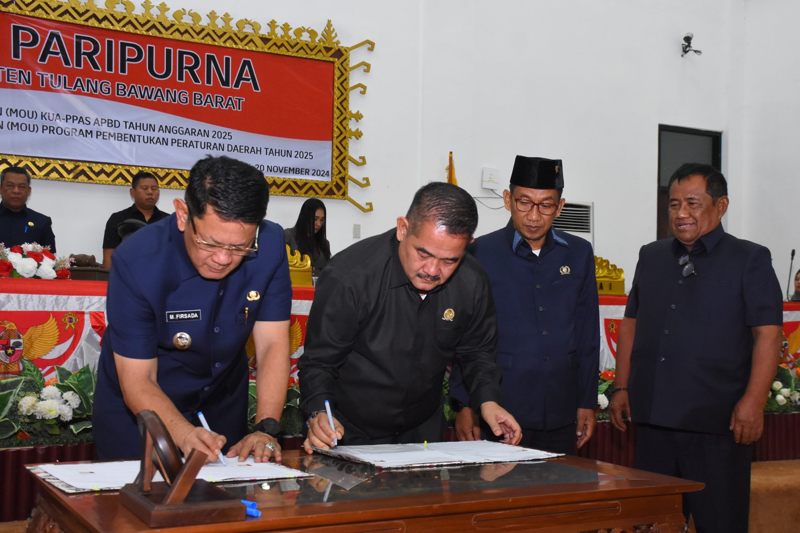 Tubaba – Seperti disampaikan Penjabat (Pj) Bupati Tulang Bawang Barat (Tubaba) Drs. M. Firsada, M.Si., saat memberikan sambutan pada Rapat Paripurna Penandatanganan Kesepakatan KUA-PPAS Kabupaten Tubaba Tahun Anggaran (TA) 2025 dan Penandatanganan Mou Propemperda Tahun 2025. Di Ruang Paripurna DPRD setempat. Rabu (20/11/2024).
