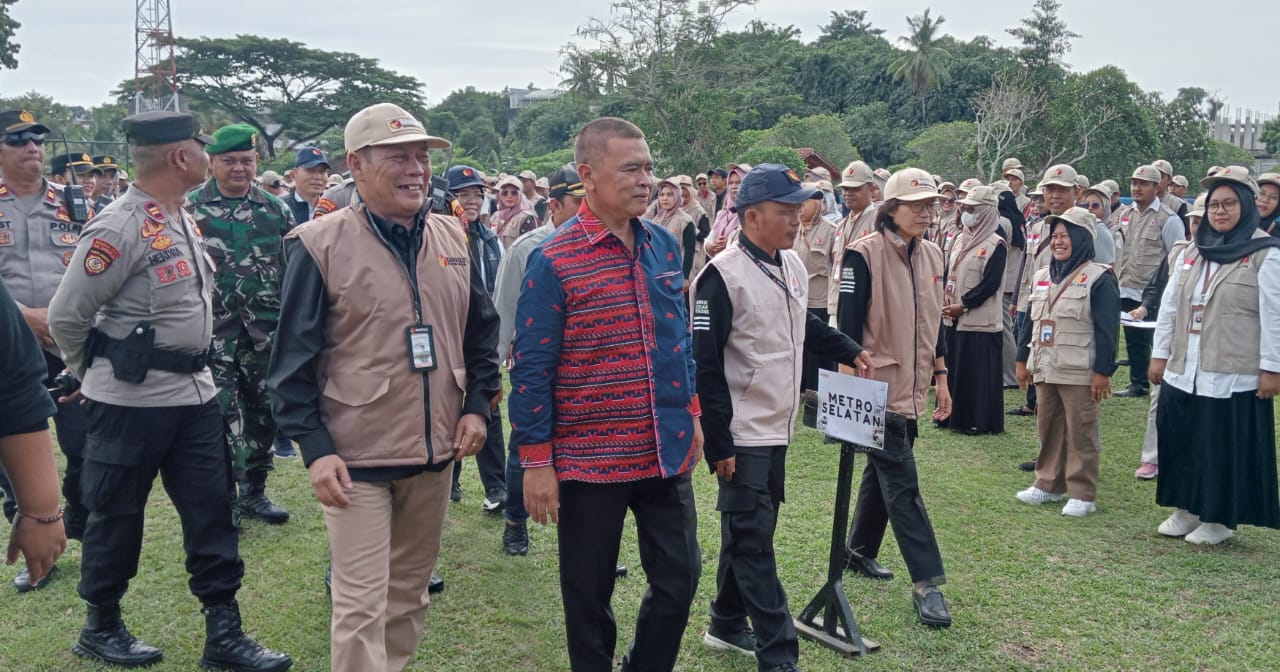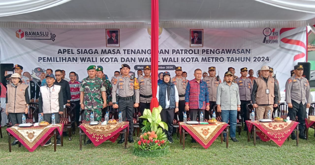 METRO – Badan Pengawas Pemilu (Bawaslu) Kota Metro Provinsi Lampung menggelar Apel Siaga dalam menghadapi masa tenang dan patroli pengawasan pemilihan Walikota dan wakil Walikota Metro Tahun 2024 di Lapangan Kudus Yoso Rejo Metro Timur, Minggu (24/11/2024).