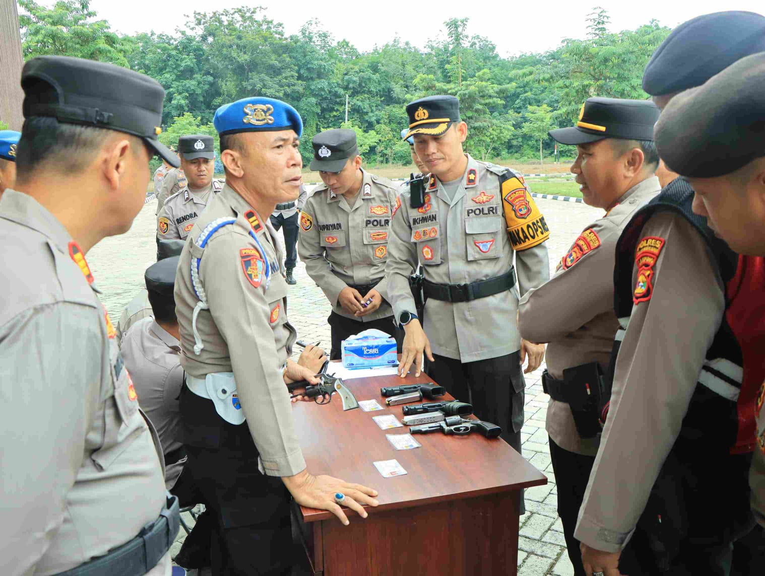 Tulang Bawang Barat — Wakapolres Tulang Bawang Barat, Polda Lampung, Kompol Ikhwan Syukri, S.H., S.I.K., M.H. Mewakili Kapolres Tubaba AKBP Sendi Antoni, S.I.K., M.I.K., Pimpin langsung pengecekan dan pemeriksaan secara langsung terhadap senjata api (senpi) dinas yang dipinjam pakaikan kepada personel Polres Tubaba