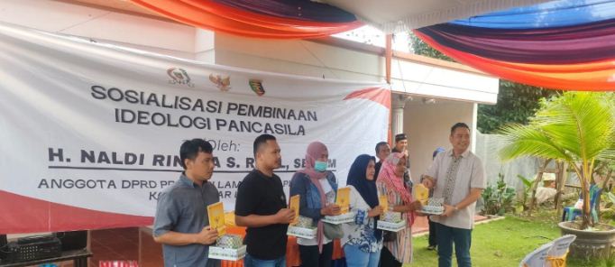Dalam sosialisasi tersebut, H. Naldi Rinara S. Rizal, S.E., M.M menghimbau masyarakat dengan sosialisasi ideologi Pancasila dapat menjadikan masyarakat lebih sadar untuk memupuk rasa cinta tanah air.