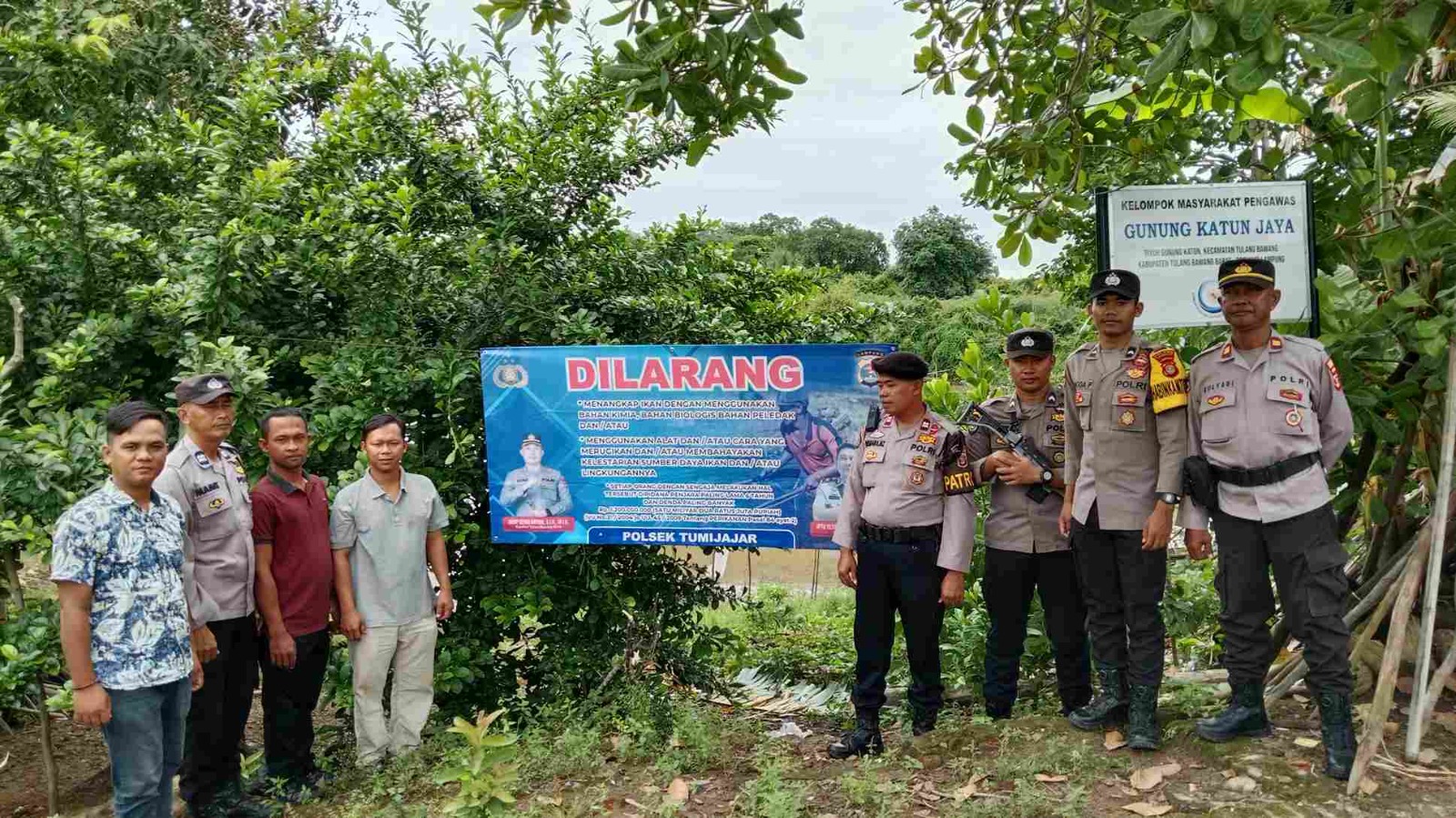Tulang Bawang Barat – Polsek Tumijajar Polres Tubaba memasang spanduk berisi imbauan larangan penyetruman ikan di Tiyuh Karta dan Tiyuh Gunung Katun Tanjungan Kec. Tulang Bawang Udik Kab. Tulang Bawang Barat, Jumat (06/12/2024)