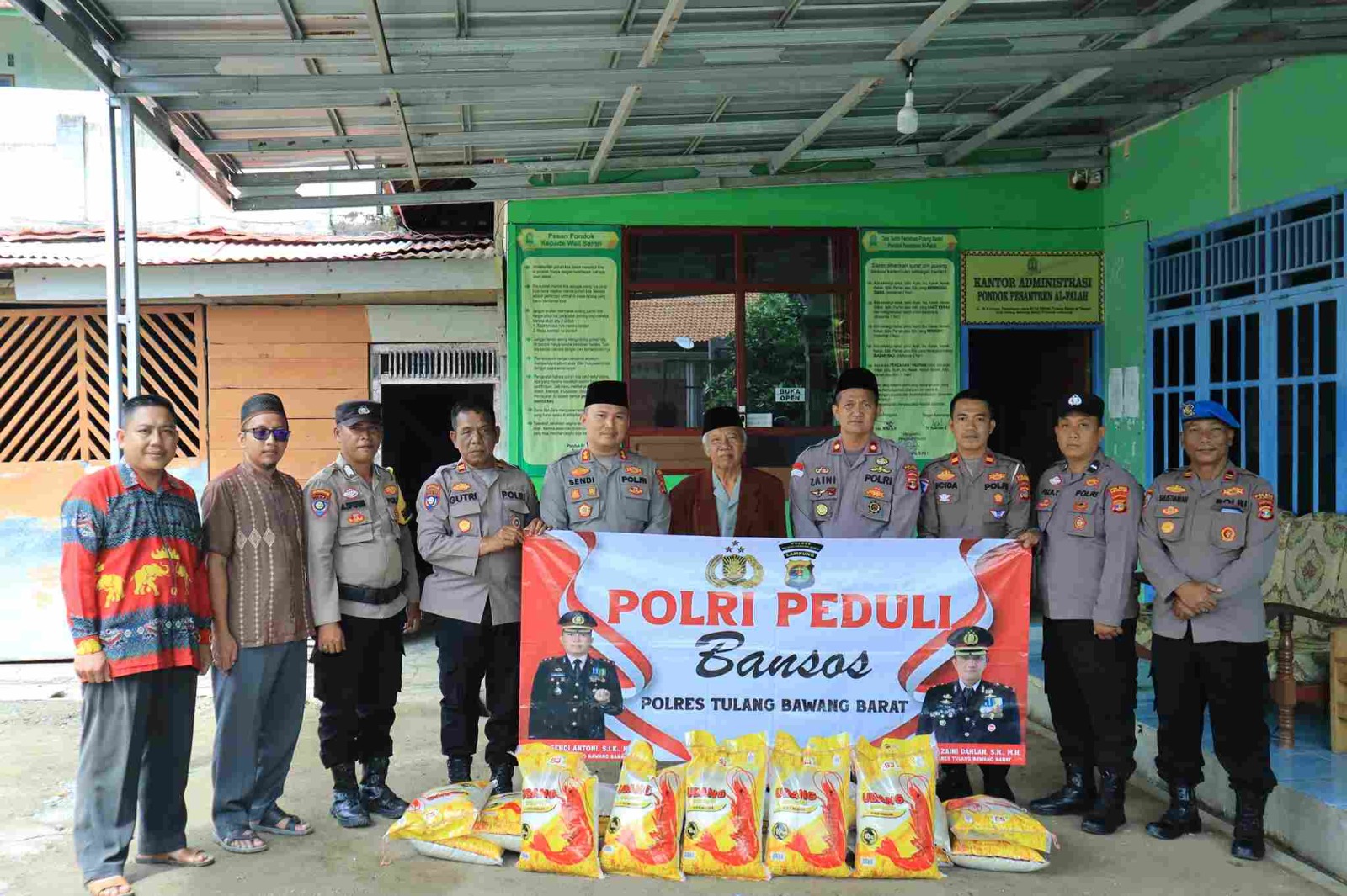 Tulang Bawang Barat – Wujud kepedulian Polri, Kapolres Tulang Bawang Barat AKBP Sendi Antoni, S.IK.,M.IK beserta Ketua Bhayangkari cabang Tubaba Nina Sendi Antoni didampingi Wakapolres Tubaba Kompol Zaini Dahlan, S.H., M.H., Kasat Binmas Iptu Gutri, Kasipropam Iptu Sulistyawansyah Putra, S.H, dan Pengurus Bhayangkari cabang Tubaba memberikan bantuan sosial (Bansos) berupa sembako untuk masyarakat membutuhkan, Kamis (30/01/2025) pagi