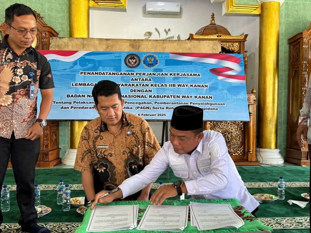 Way Kanan – Lapas Kelas IIB Way Kanan resmi menjalin kerja sama dengan Badan Narkotika Nasional Kabupaten (BNNK) Way Kanan dalam upaya pencegahan dan pemberantasan narkoba di lingkungan Lapas.