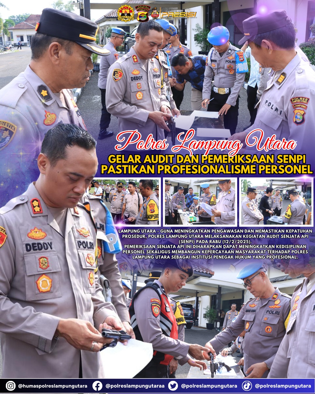 Lampung Utara – Guna meningkatkan pengawasan dan memastikan kepatuhan prosedur, Polres Lampung Utara melaksanakan kegiatan Audit Senjata Api (Senpi) pada Rabu (12/2/2025).