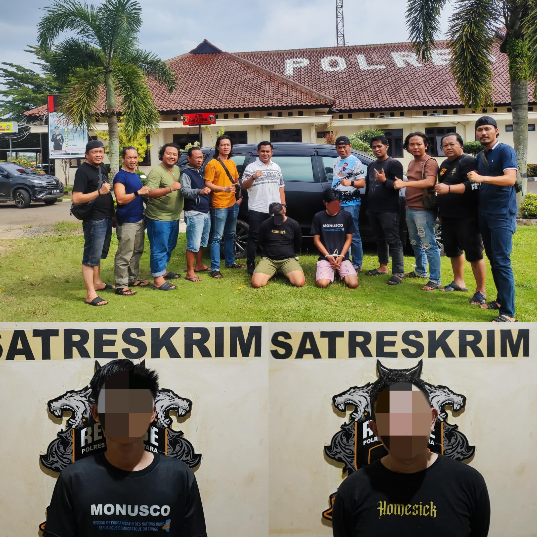 Dua tersangka kini telah diamankan dan tengah menjalani pemeriksaan di Mapolres Lampung Utara. Barang bukti yang ditemukan berupa satu unit mobil Suzuki Ertiga yang telah dicat ulang dan kunci duplikat mobil tersebut. Kapolres Lampung Utara mengimbau masyarakat untuk selalu berhati-hati dan melaporkan segala bentuk kejahatan agar tindakan kriminal dapat segera ditindaklanjuti oleh aparat kepolisian,” (Ujarnya).