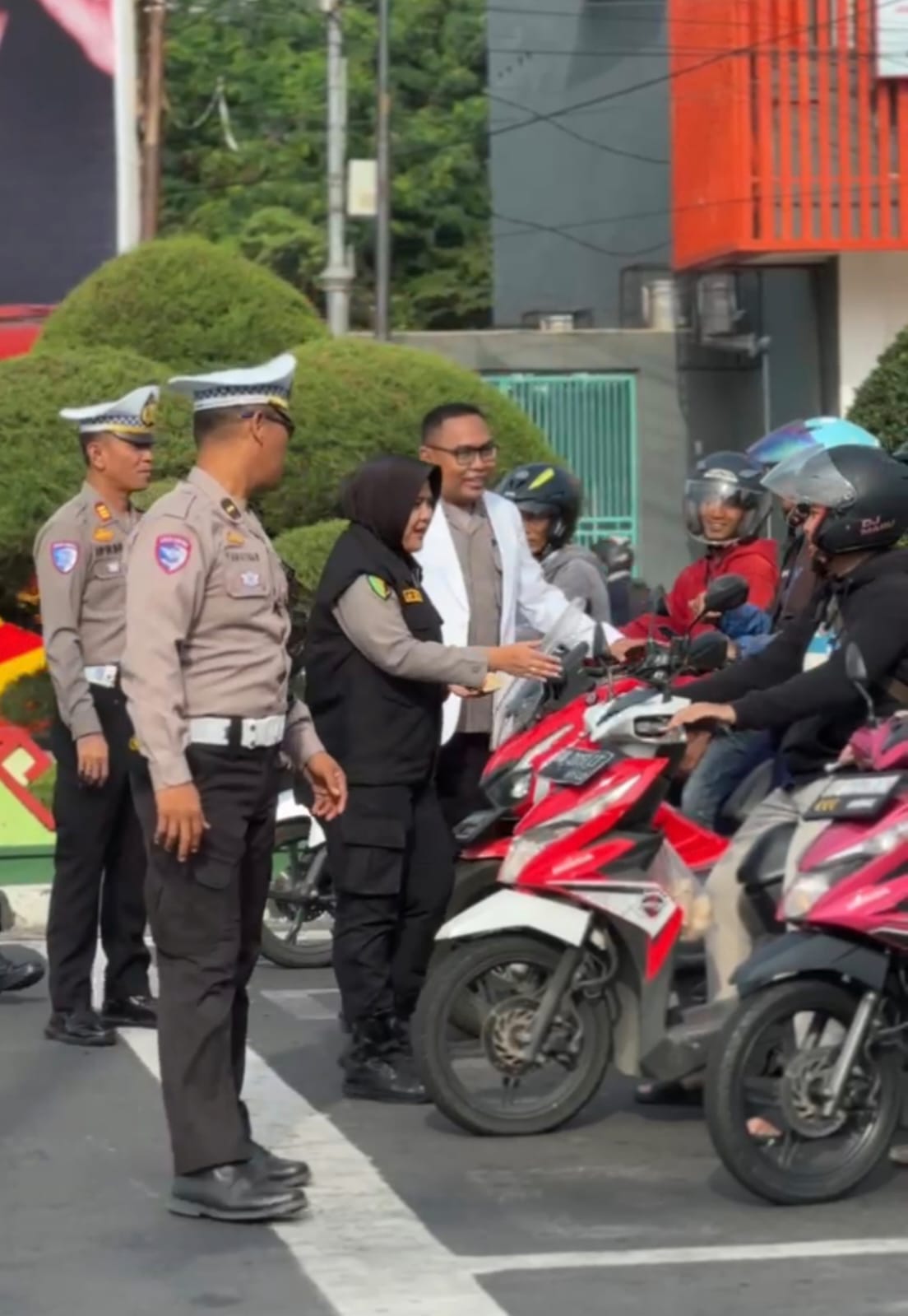 Bandar Lampung – Kepolisian Daerah (Polda) Lampung melalui Bidang Kedokteran dan Kesehatan (Biddokkes) membagikan suplemen vitamin kepada para pengendara roda dua di Bundaran Tugu Adipura, Bandar Lampung, pada Kamis (13/2/2025).