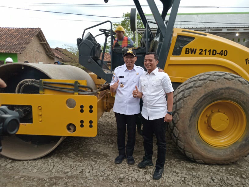 Acara ground breaking pembangunan jalan provinsi yang ditandai dengan perataan permukaan jalan menggunakan alat berat yang dikendarai secara bergantian oleh Gubernur Lampung dan Bupati Pringsewu ini dihadiri jajaran Pemprov dan Forkopimda Provinsi Lampung, Wakil Bupati Pringsewu Umi Laila dan Ketua DPRD Pringsewu Suherman beserta jajaran Pemkab dan Forkopimda Kabupaten Pringsewu. (Her)