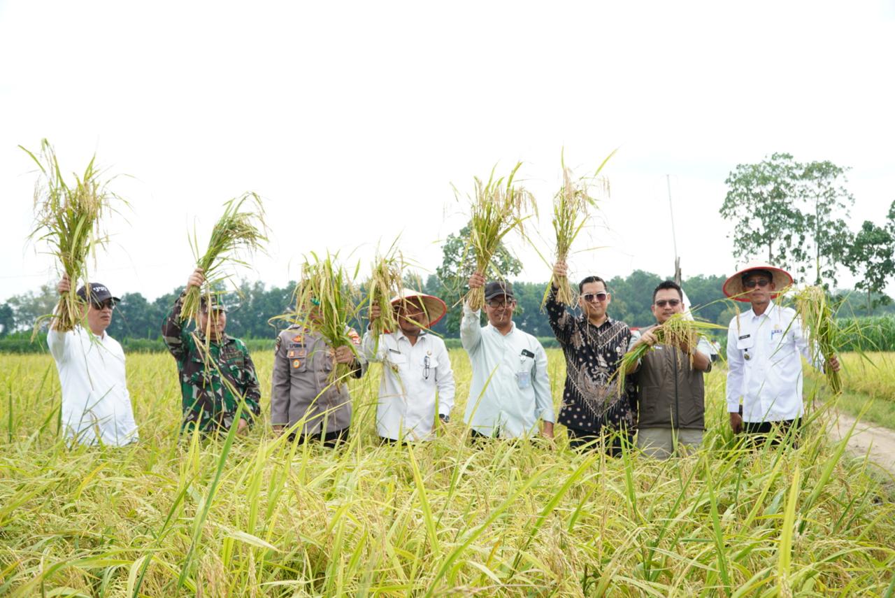 Tubaba – Dalam Upaya Mendukung Program Ketahanan Pangan Nasional Bupati Tulangbawang Barat (Tubaba) Ir. Novriwan Jaya, S.P, bersama jajaran Forkopimda Melakukan Panen Raya Padi Kelompok Tani Masyarakat Di Tiyuh Gading Kecana Kec. Tulangbawang Udik Rabu (19/03/2025).