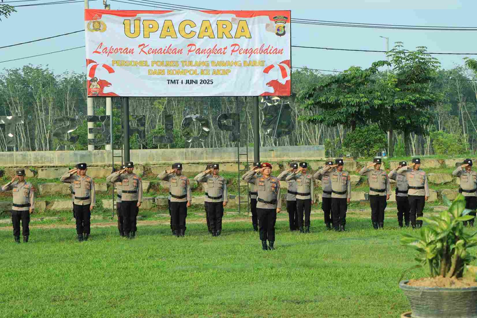 Tulang Bawang Barat — Kapolres Tulang Bawang Barat AKBP Sendi Antoni, S.I.K., M.I.K., pimpin upacara Kenaikan Pangkat Pengabdian personel Polres Tubaba TMT 1 Juni 2025, bertempat di Lapangan upacara Mapolres Tubaba, Rabu (28/05/2025). Pagi