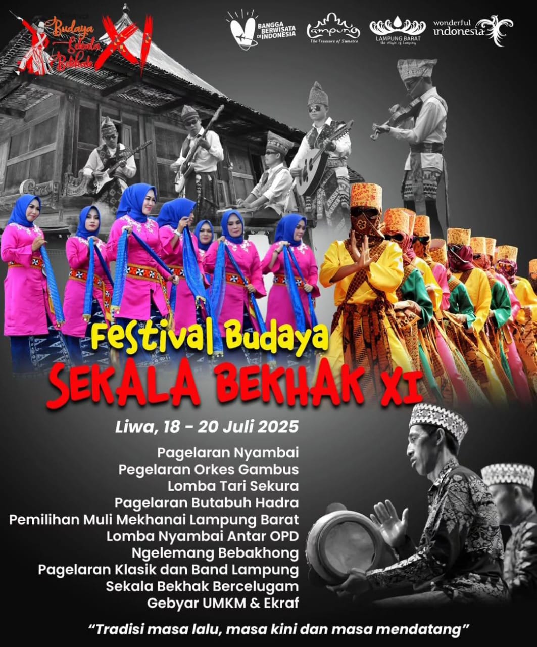 Lampung Barat – Pemerintah Kabupaten Lampung Barat memastikan Festival Sekala Bekhak (FSB) XI 2025 akan berlangsung pada 18–20 Juli 2025 di Liwa, meski dengan skala lebih sederhana akibat penyesuaian anggaran, Rabu (16/06/2025).