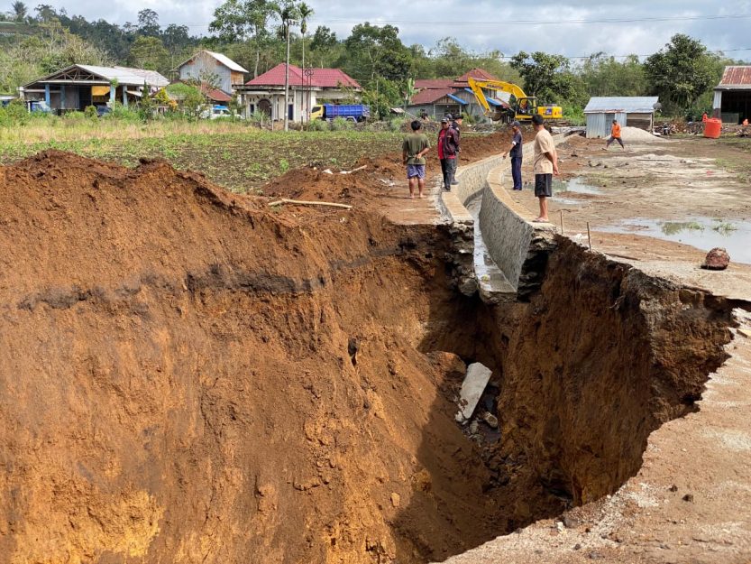 “Lahan ini saya hibahkan karena harapannya irigasi ini bisa menyelesaikan masalah banjir. Tapi kok malah begini, ambles dalam sekali. Takutnya nanti retakannya tambah lebar ke arah rumah saya,” ungkap Parul saat ditemui di lokasi kejadian, Senin (14/07/2025).