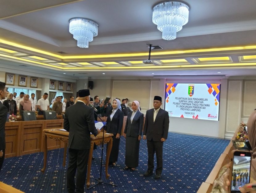 Bandarlampung – Gubernur Lampung Rahmat Mirzani Djausal kembali melakukan penyegaran birokrasi di lingkup Pemprov Lampung. Tiga pejabat eselon II resmi dilantik berdasarkan Surat Keputusan Gubernur Nomor 800.1.3.3/3553/VI.04/2025 yang ditandatangani pada 14 Juli 2025. Prosesi pelantikan digelar di Gedung Kantor Gubernur, Rabu (16/7/2025).