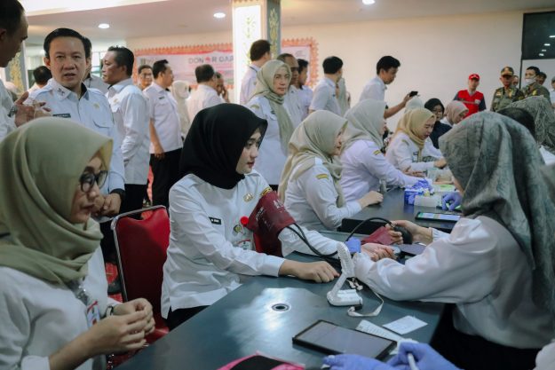 BANDAR LAMPUNG — Ketua Palang Merah Indonesia (PMI) Provinsi Lampung Ibu Purnama Wulan Sari Mirza menggandeng Pemerintah Provinsi Lampung menggelar kegiatan donor darah dalam rangka memperingati Hari Ulang Tahun ke-80 Kemerdekaan Republik Indonesia, yang berlangsung di Ruang Abung, Balai Keratun, Kompleks Kantor Gubernur, Bandarlampung, Rabu (13/8/2025)
