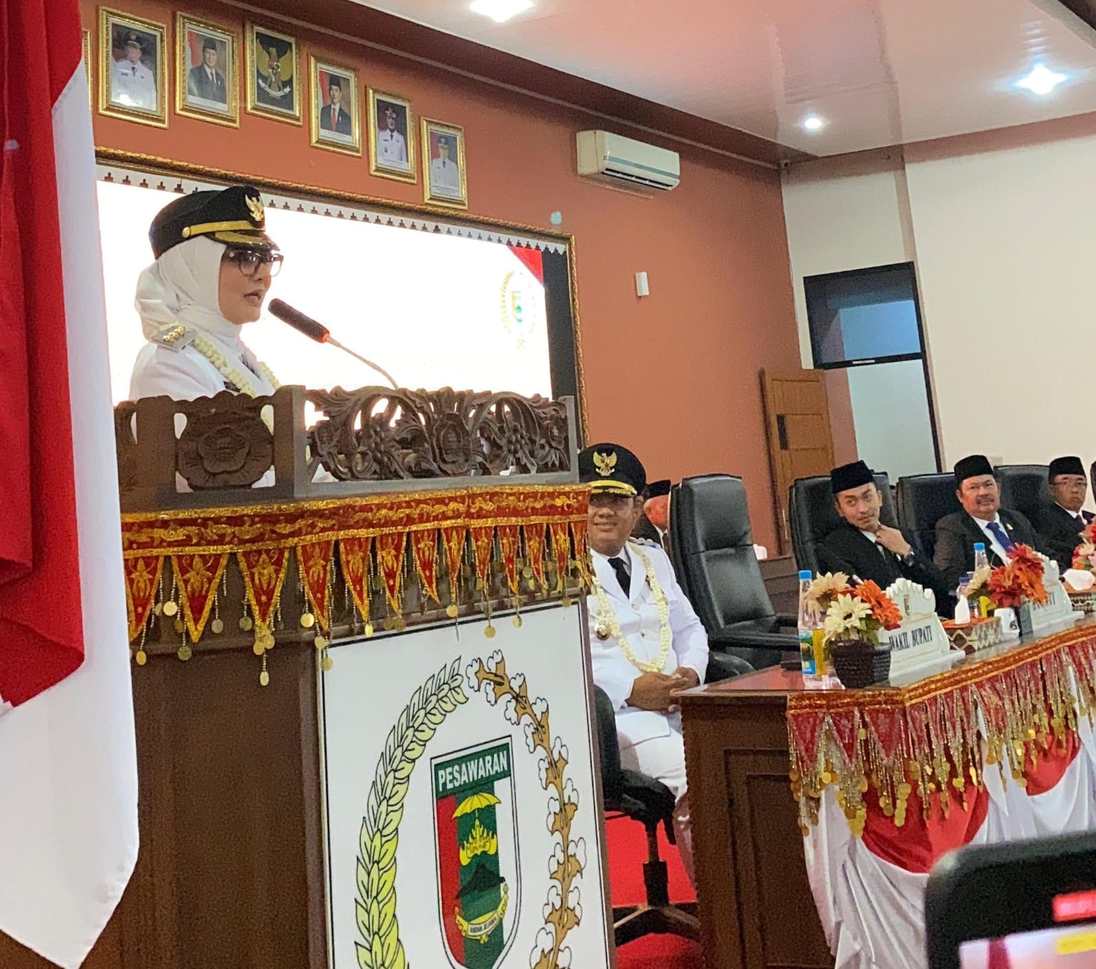Pesawaran – Bupati Pesawaran Hj. Nanda Indira Bastian, S.E., M.M., menyampaikan pidato perdananya dalam Sidang Paripurna DPRD Kabupaten Pesawaran, Rabu (27/8/2025). Rapat ini menjadi momentum awal kepemimpinan Nanda bersama Wakil Bupati Antonius Muhammad Ali, S.H., pasca dilantik untuk memimpin Bumi Andan Jejama periode 2025–2030.