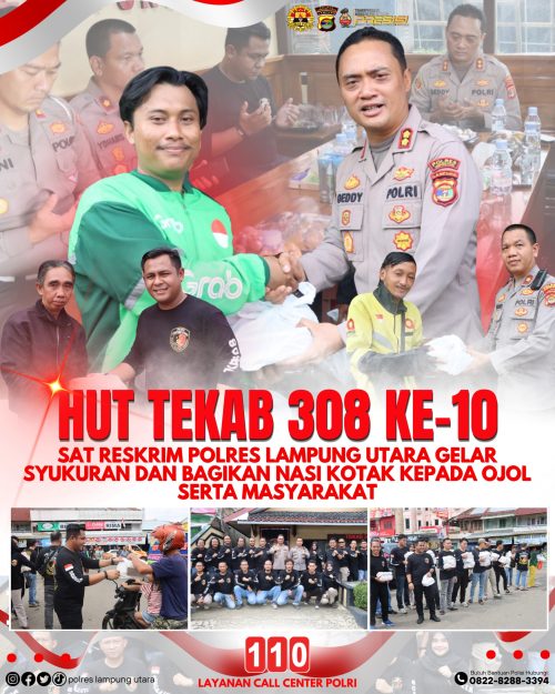 Lampung Utara – Satuan Reserse Kriminal (Sat Reskrim) Polres Lampung Utara menggelar syukuran dalam rangka Hari Ulang Tahun Tekab 308 Presisi yang ke-10, Selasa (2/9/25).