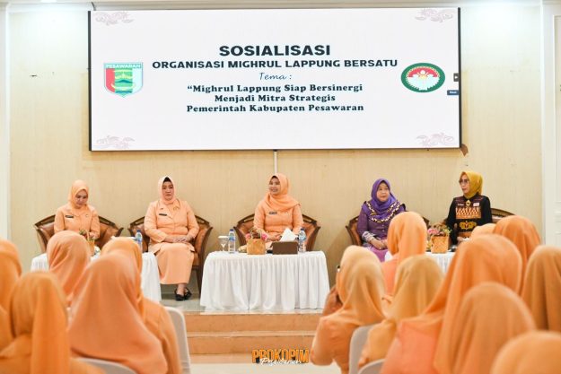 Pesawaran — Penasehat Dharma Wanita Persatuan Kabupaten Pesawaran, Cindy Aria Anton, membuka secara resmi kegiatan Sosialisasi Organisasi Mighrul Lappung Bersatu yang berlangsung di Aula Kabupaten Pesawaran, Selasa (07/10/25). Kegiatan dihadiri Ketua Dharma Wanita Persatuan Kabupaten Pesawaran, dan Ketua Unsur Dharma Wanita Persatuan Perangkat Daerah dan Kecamatan se- Kabupaten Pesawaran