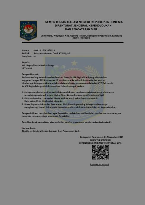Pesawaran – Dinas Kependudukan dan Pencatatan Sipil (Disdukcapil) Kabupaten Pesawaran mengeluarkan peringatan resmi kepada masyarakat untuk mewaspadai aksi penipuan terbaru yang mengatasnamakan institusi tersebut. Modus penipuan ini dilakukan melalui pesan atau panggilan telepon WhatsApp dengan dalih meminta barcode aktivasi layanan Identitas Kependudukan Digital (IKD).