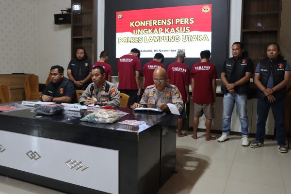 Hal tersebut disampaikan oleh Waka Polres Kompol Yohanis mewakili Kapolres Lampung Utara AKBP Deddy Kurniawan didampingi Kasat Reskrim AKP Apfryyadi Pratama dan Kasi Humas AKP Budiarto saat menggelar Konferensi Pers, Selasa (4/11/25).