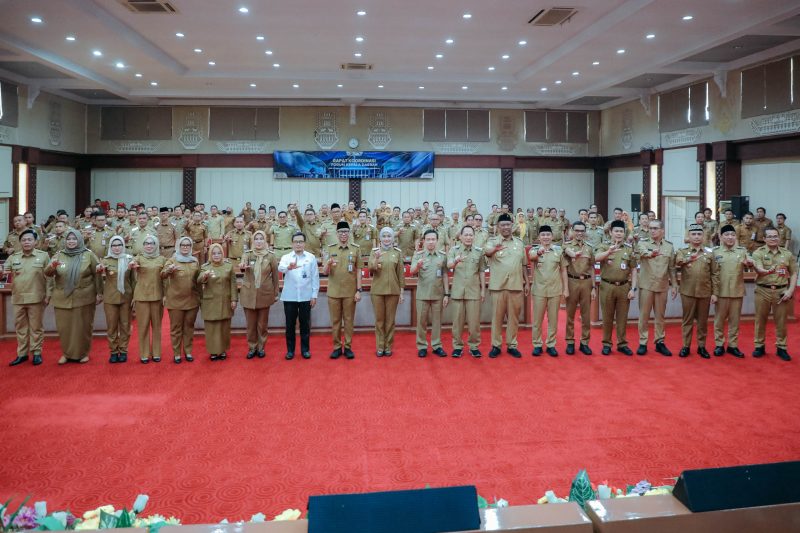 BANDARLAMPUNG – Gubernur Lampung Rahmat Mirzani Djausal, memimpin Rapat Koordinasi Forum Kepala Daerah, yang berlangsung di Gedung Pusiban, Kompleks Kantor Gubernur Lampung, Bandar Lampung, Senin (9/3/2026).