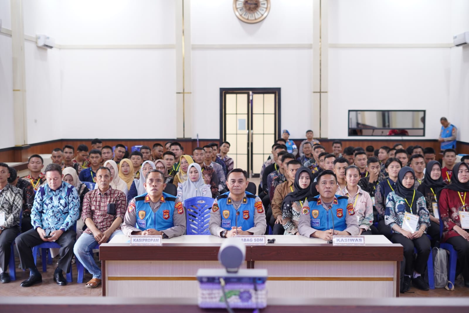 Acara yang digelar di Aula Wirasatya Polres Tulang Bawang pada hari Selasa, pukul 08.00 WIB hingga selesai, dipimpin secara langsung oleh Kapolda Lampung Irjen Pol Helfi Assegaf, S.I.K., M.H., yang dalam sambutannya menegaskan bahwa penerimaan anggota Polri merupakan gerbang utama untuk mendapatkan sumber daya manusia berkualitas yang memiliki integritas tinggi dan komitmen yang tak tergoyahkan untuk melayani rakyat dan negara.
