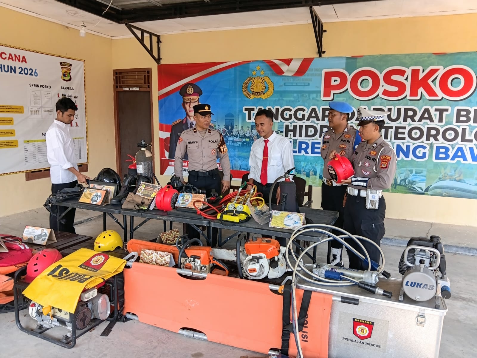 Kegiatan yang berlangsung di Posko Tanggap Darurat Bencana Polres Tulang Bawang, Senin (20/04/26), dipimpin Ipda Wahyu Eko Handoko, S.H., bersama personel terpilih.